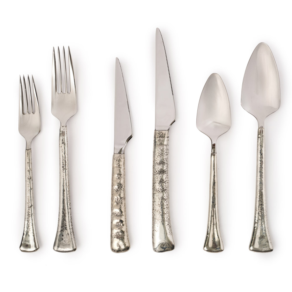 • Ogni posata รจ in acciaio inox con il manico in peltro realizzato interamente a mano in Italia per Emanuela Rossi di Marsciano dai piรน abili maestri peltrai lombardi.